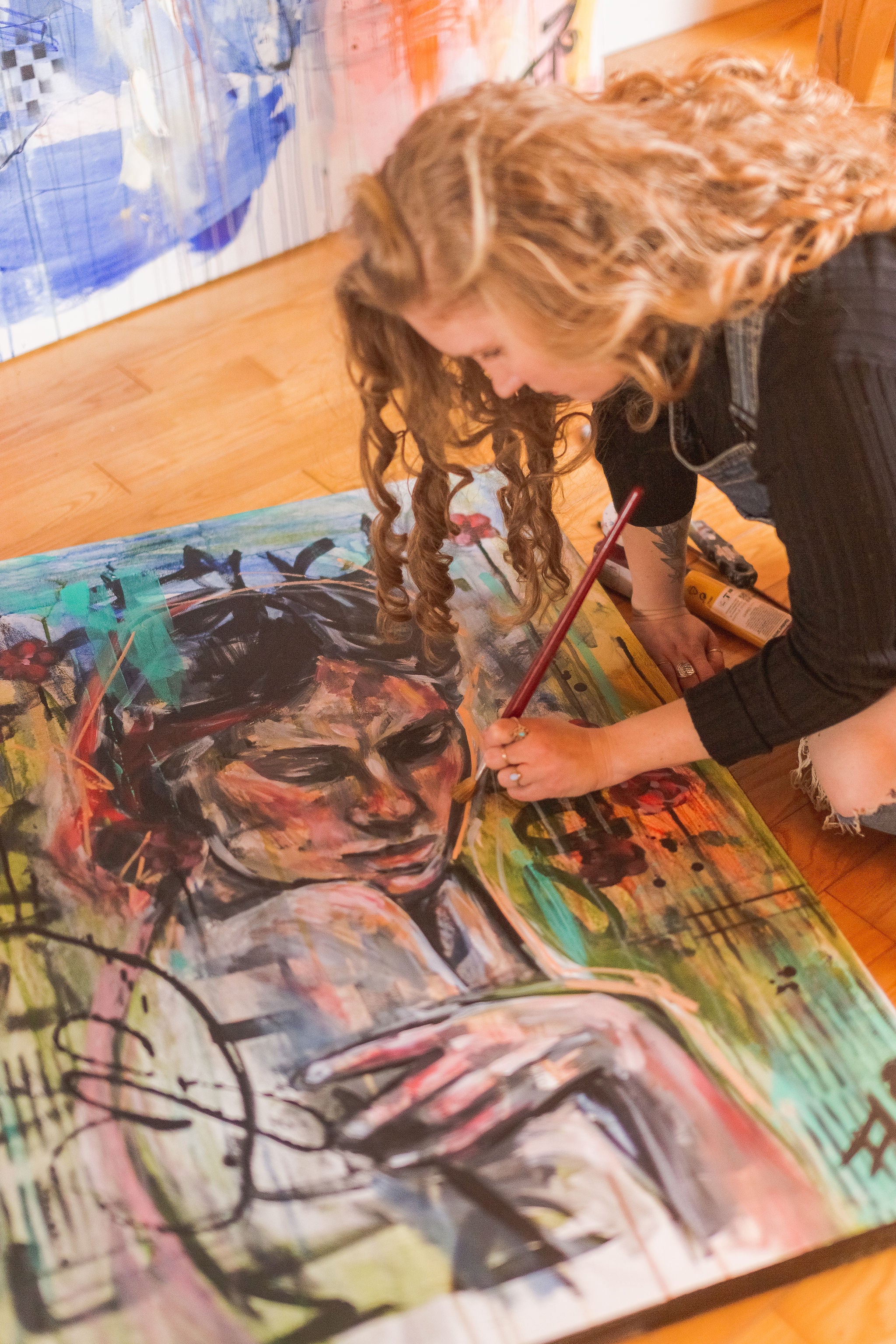 Mon style oscille entre l’abstraction et le figuratif, une zone floue et libératrice où l’instinct prend le dessus. Mon impulsivité s’invite sur la toile : j’arrive souvent en voulant tout contrôler… mais la toile me ramène à l’ordre. Elle me parle, je l’écoute, et un dialogue s’installe.